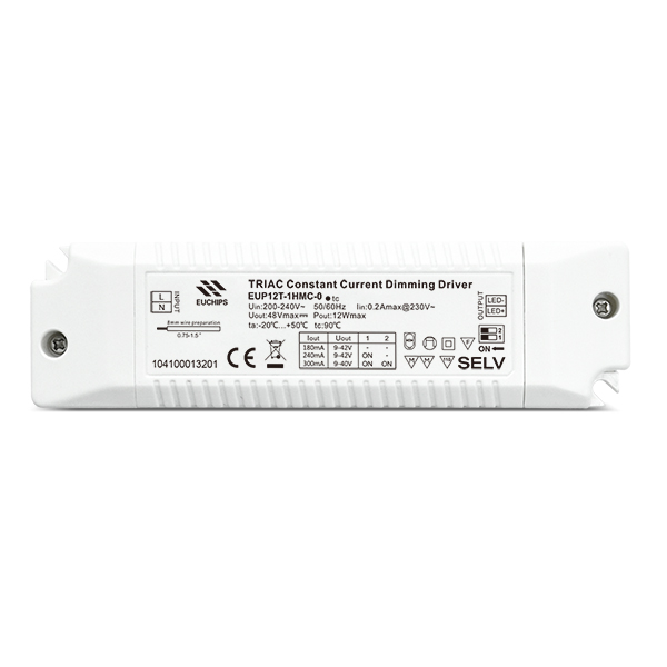EUP12T-1HMC-0是一款(kuan)恒流輸(shu)出(chu)的LED驅動器,輸(shu)出(chu)電流可以(yi)通(tong)過DIP撥碼開關簡易設置(zhi)。這款(kuan)驅動器支持前沿(yan)切相和(he)后沿(yan)切相調光器,可以(yi)與多品牌系統(飛利浦(pu),ABB,路創,西門(men)子,西蒙,松下(xia),邦(bang)奇等)配合使用,調光曲線平滑。