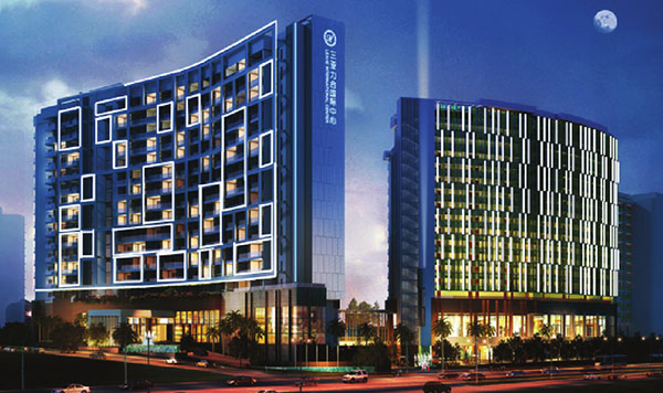 三亞力合國際中心,是位于海南三亞旅游區的酒店集團,緊挨著的一期和二期酒店建筑外觀均由歐切斯提供照明解決方案,一期酒店外觀照明為流線型,二期外觀照明側重時尚,以方框追逐,交替變換來彰顯時尚個性,吸引游客。