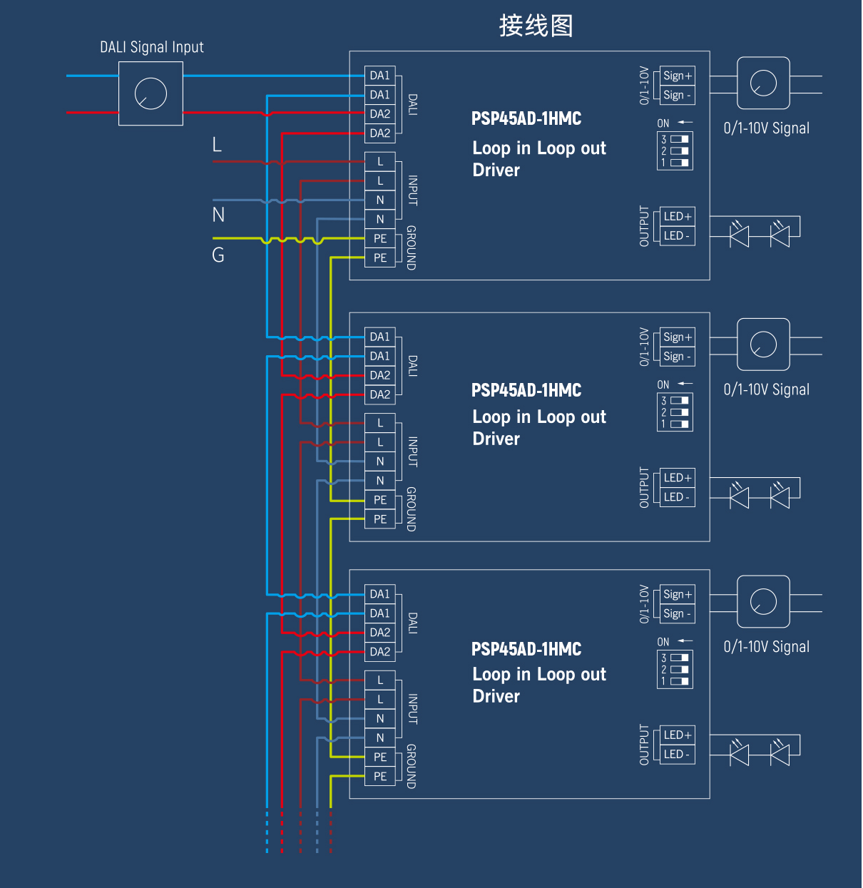 PSP45AD-1HMC電源輸(shu)入(ru)L/N和(he)信(xin)號線都可級(ji)聯(lian),接線端子(zi)兼容(rong)2.5㎡線材。