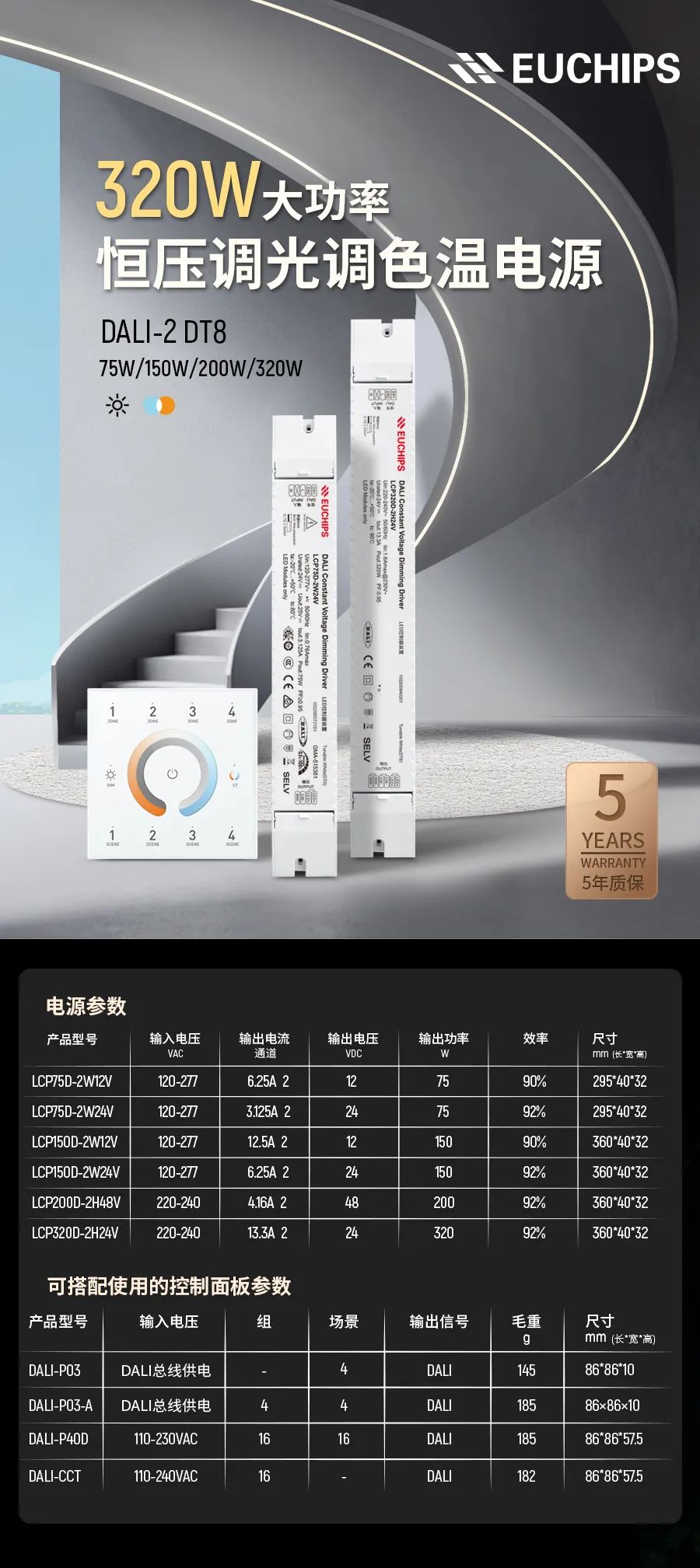 大功率DALI-2 DT8恒壓調光調色溫電源