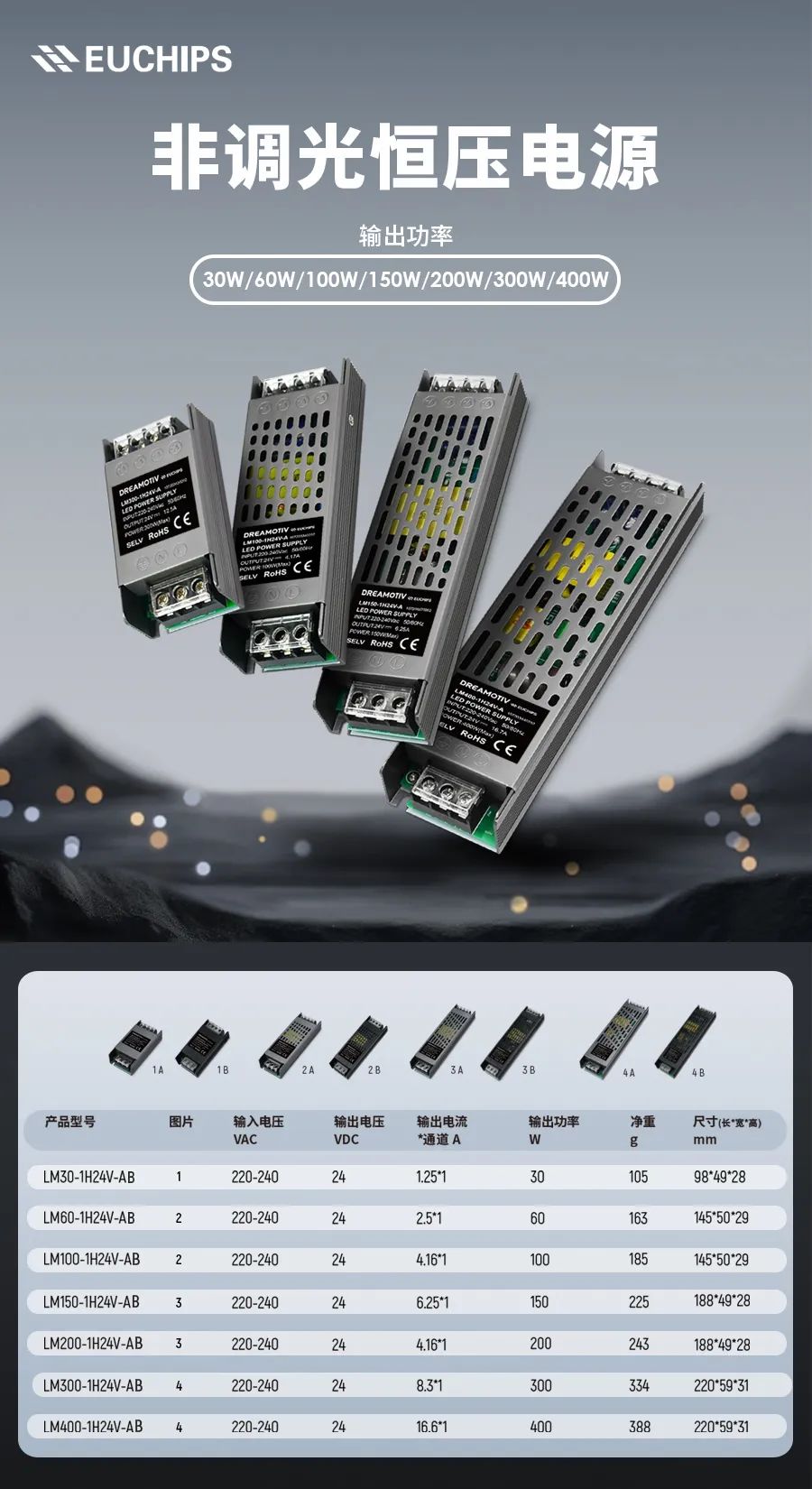 3. 多功率選擇,規格齊全。與燈帶匹配更佳。可用于建筑、櫥柜、家具、廣告燈箱、陳列照明等。