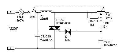 當環境亮度變化時,光敏電阻的CDS電阻值也會相應地改變,一旦出現這種變化值,可控硅的導通角也會隨之改變,這樣就可讓燈泡亮度向相反方向改變。RW2用于調整光敏電阻的靈敏度。