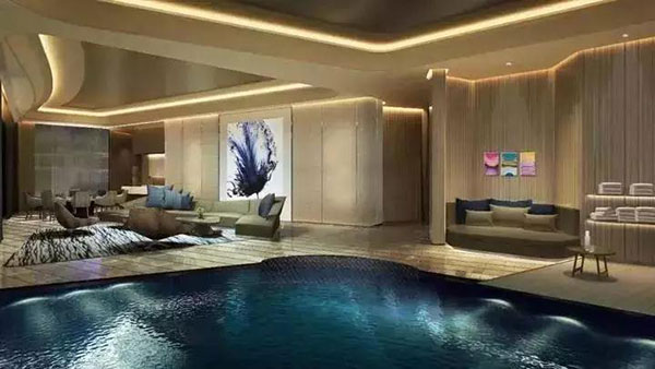 酒店的(de)天際泳池(chi)位于(yu)酒店 40樓,平均水深1.2m,距離地面(mian)130米(mi)。在(zai)這(zhe)里暢泳,絕對能體驗飄然(ran)云端的(de)獨特感受。