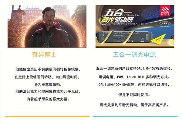 奇異博士身為至尊魔法師,他的法師能力和空間位移能力幾乎無敵,有著超乎想象的強大力量。歐切斯五合一調光電源系列產品,支持DALI,0-10V有源信號,可調電阻,PWM, Touch DIM 多種調光方式。