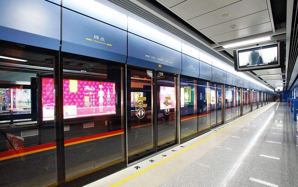屏蔽門光帶區:當列車進站時,屏蔽門光帶跟隨列車進站而調亮照度提醒乘客進站,當列車出站時,光帶自動調暗,節約能耗。