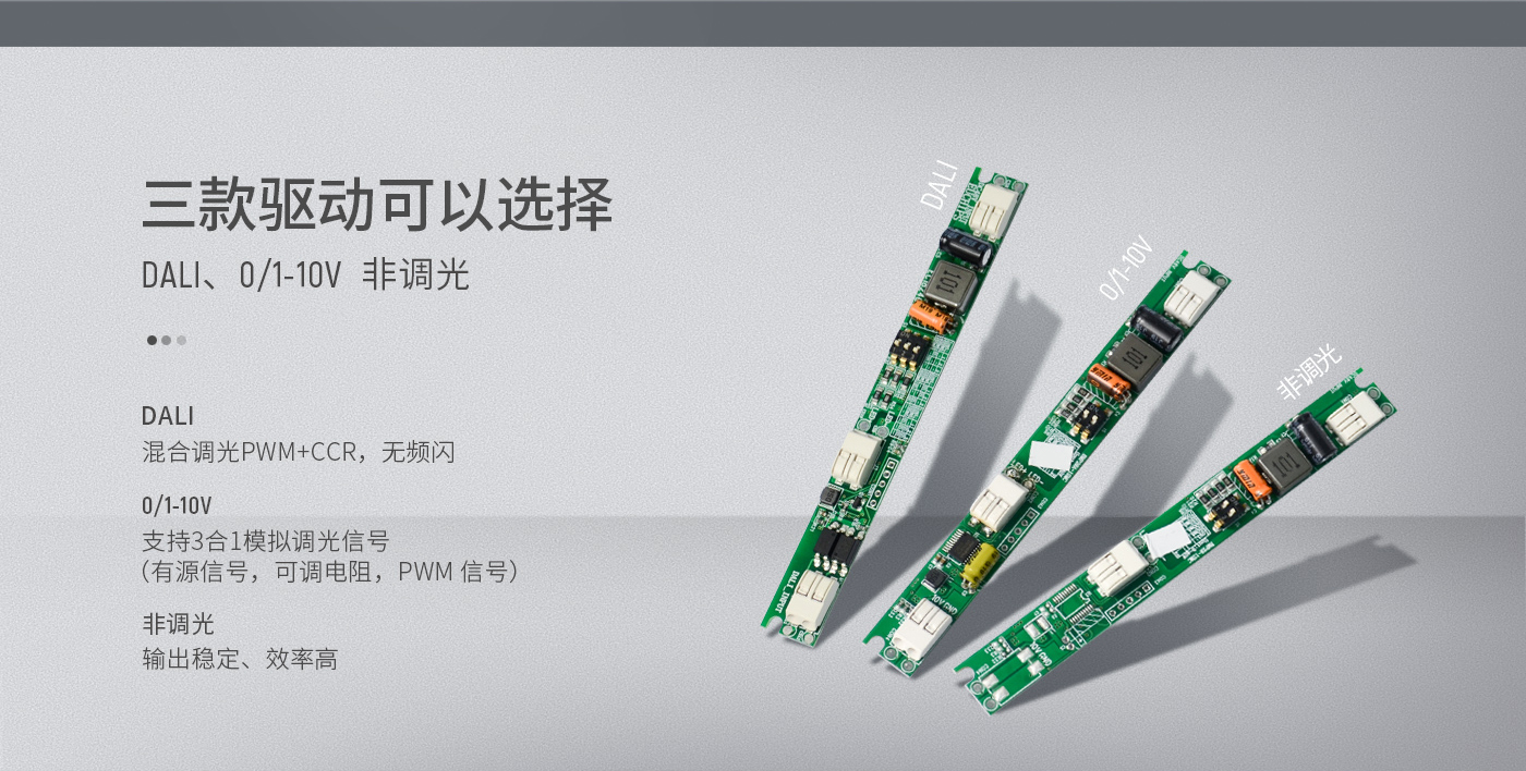 1、新發布的導軌驅動器有0/1-10v,DALI,非調光三種方式可以選擇;輸入支持熱插拔,擁有多重保護設置。