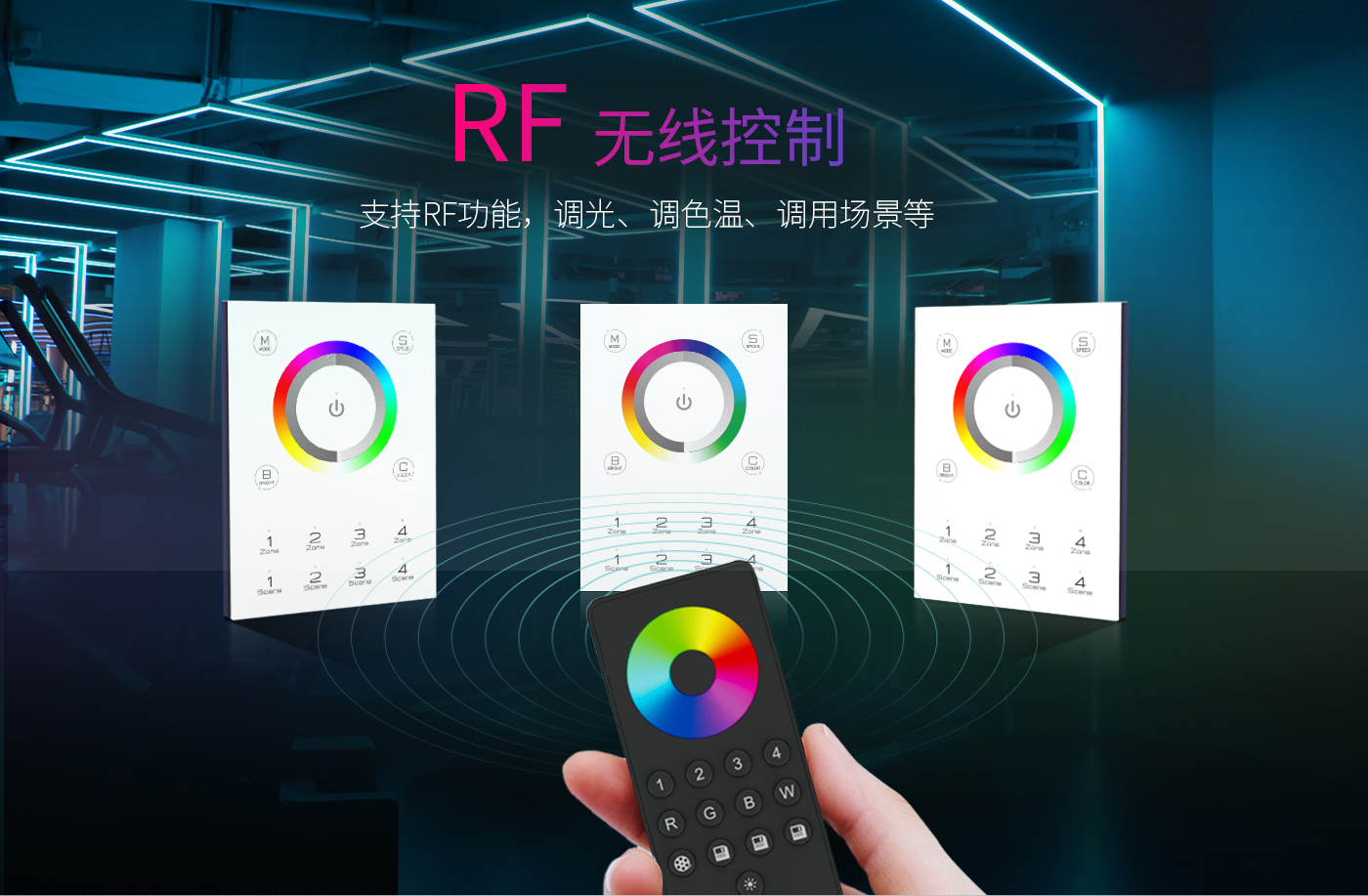 以(yi)(yi)上(shang)幾(ji)款面板均支持RF無線控(kong)制功能,通過匹配遙控(kong)器可以(yi)(yi)對燈具進(jin)行調光,調色溫(wen),調用(yong)場景等。