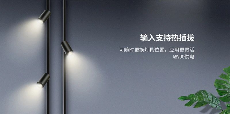 48V低壓供電,非常安全。輸入支持熱插拔,在磁吸軌道內可任意調節燈光角度,營造氛圍,讓燈光更貼心,隨心所欲。