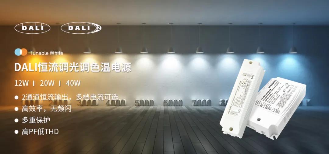 歐切斯DALI恒流調光調色溫電源:①. 支持2通道恒流輸出,輸出電流可以通過撥碼開關進行控制,多檔電流可選;②. 內置高性能MCU芯片,挑戰調光極限,實現0.1%深度調光,全程調光平滑自然,無頻閃;③. 內置短路、過載、過壓保護,有效避免電路發生故障時而造成設備元件的損壞;④. 配置高PF低THD,穩定可靠,有效提高電能利用率。