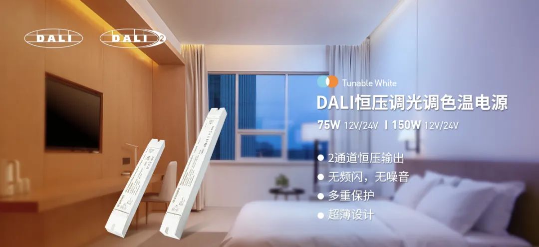 歐切斯DALI恒壓調光調色溫電源:①. 支持2通道恒壓輸出,支持單路和多路帶載,輕松調節燈光亮度和色溫;②. 內置高性能MCU,可實現千分之一深度調光,無頻閃,無抖動,無噪音;③. 內置過載保護、過壓保護、短路保護;④. 電源采用修長機身設計,體積小巧,方便安裝于各類空間狹窄的區域,應用廣泛。