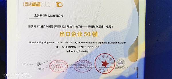 作為2022阿拉丁神燈獎分項獎的創新融合獎之一,首屆照明細分領域出口企業50強由廣東光亞照明研究院與CILCA國際照明商會聯合主辦,旨在發掘深度參與海外國際市場出口業務為主,生產規模管理水平優越,研發能力突出,具備單品競爭優勢的生產型企業。歐切斯是一家集自主研發、生產、銷售、服務于一體的高新技術企業,公司本著“持續創新、拼搏奮進”的企業精神,毫厘不差的產品品質,贏得海內外市場無數客戶的肯定與認可!
