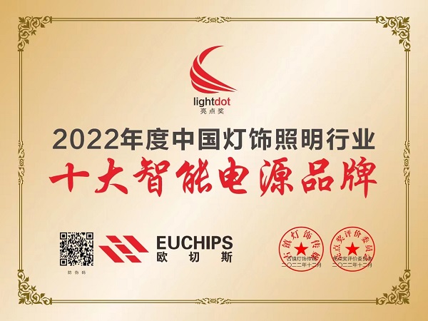 實力見證-歐切斯榮獲2022中國燈飾照明行業“十大智能電源品牌”