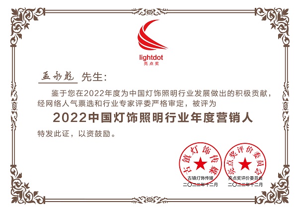 “展品牌力量,樹行業典范”亮點獎(LightDot Award)于2015年由古鎮燈飾傳媒獨家發起創辦,是一個由行業專業媒體打造的燈飾照明行業權威榜單,在行業內頗具影響力和號召力,被譽為中國燈飾照明行業最高榮譽獎項之一。“亮點獎”2022年中國燈飾照明品牌年度評選活動秉承一貫的客觀、公正、公平原則,依托網絡投票結果,近千名專家評審團打分、評選、簽字、蓋章,評選活動公平公證,遴選出致力于品牌建設的優秀照明企業,保證了評選結果的權威性,也為市場提供了有利的參考!