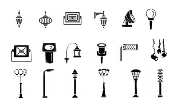 吸頂燈,吊燈,筒射燈,燈帶/燈條,壁燈,燈泡,燈管,臺燈,面板燈,吊扇燈等。