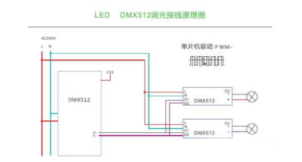DMX512是一種數字調光協議,它將光級別從0到100%分為256級。控制系統能夠實現R,G,B 各256級灰度。它的輸出的信號傳輸方式為:RS485差分信號傳輸,有效的保證了其信號的可靠性。